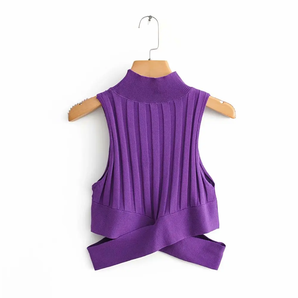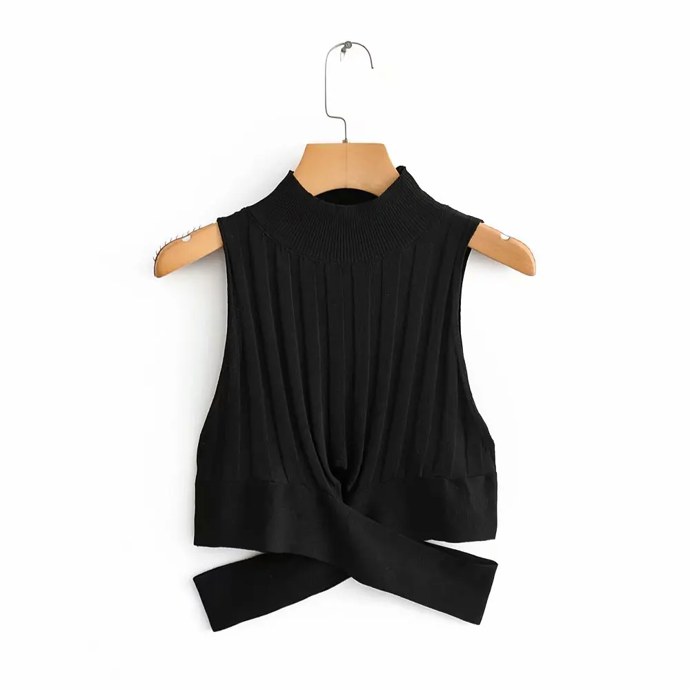 Promo women 2 color hem irregular cross short vest thin sweater ladies basic knitted casual slim sweaters